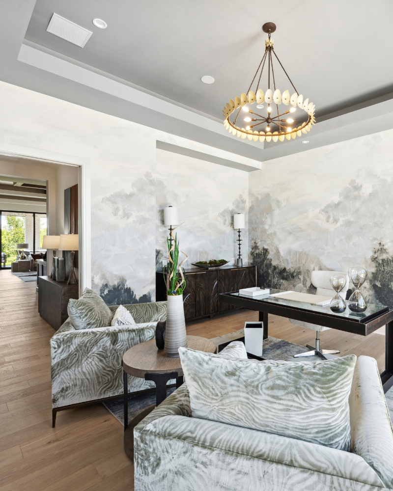 This chair beautifully combines custom craftsmanship with luxurious comfort. Locally upholstered and covered in Susan Semmelmann Couture’s exclusive Whimzee – Wunderland Sagebrush fabric, this piece showcases a soft sage green tone with a bold, organic pattern. Bronze metal legs add a grounded contrast to the plush silhouette, while Regency Down cushions offer an inviting sink-in feel. With its couture detailing and tailored proportions, this chair serves as a standout accent, effortlessly complementing a variety of interior styles while offering elevated comfort and style.